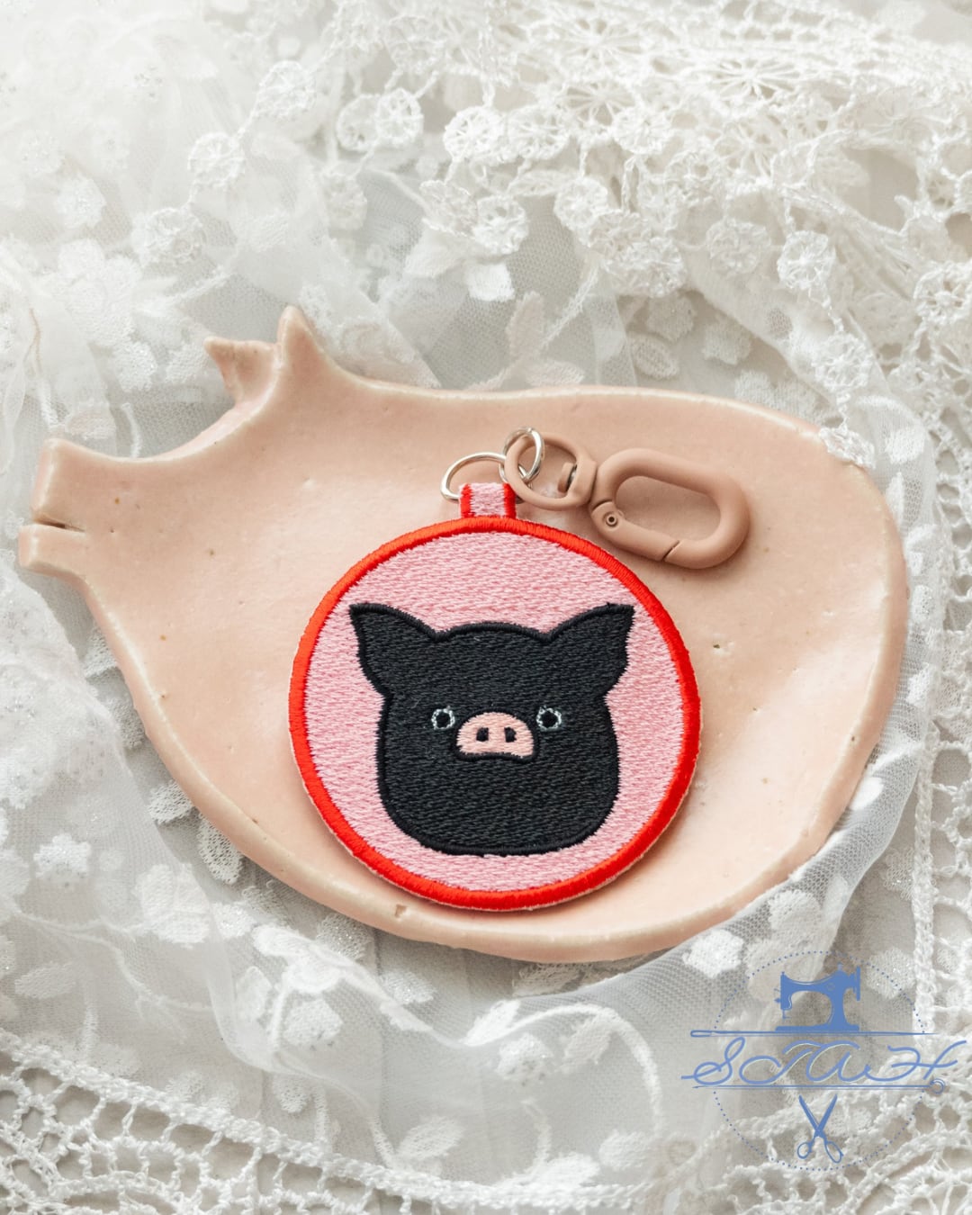 刺繍ミシンを用いて作成したぶたさんをモチーフのワッペンキーホルダーです。